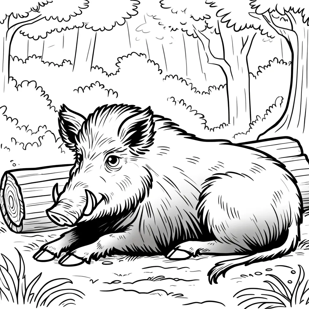 Relájate pintando este dibujo de un jabalí descansando en el bosque. Una imagen tranquila y serena ideal para momentos de calma.