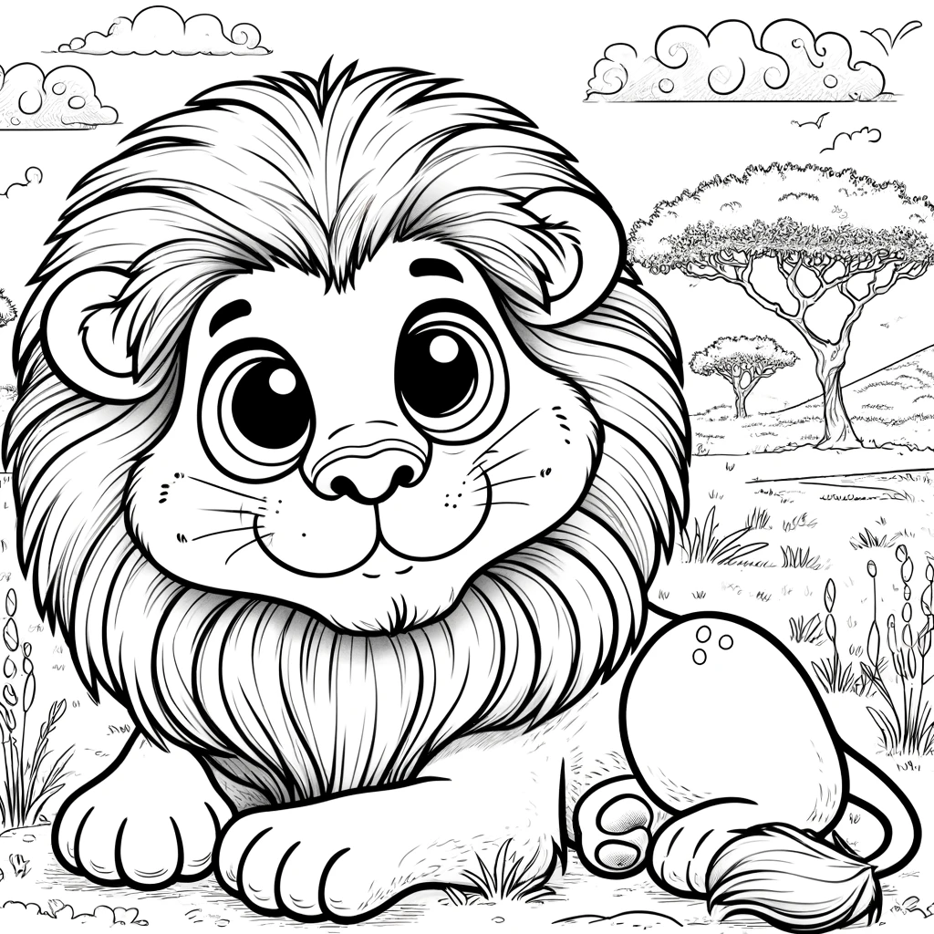 Diviértete coloreando esta encantadora caricatura de un león. Perfecto para niños, este dibujo es fácil de imprimir y colorear.