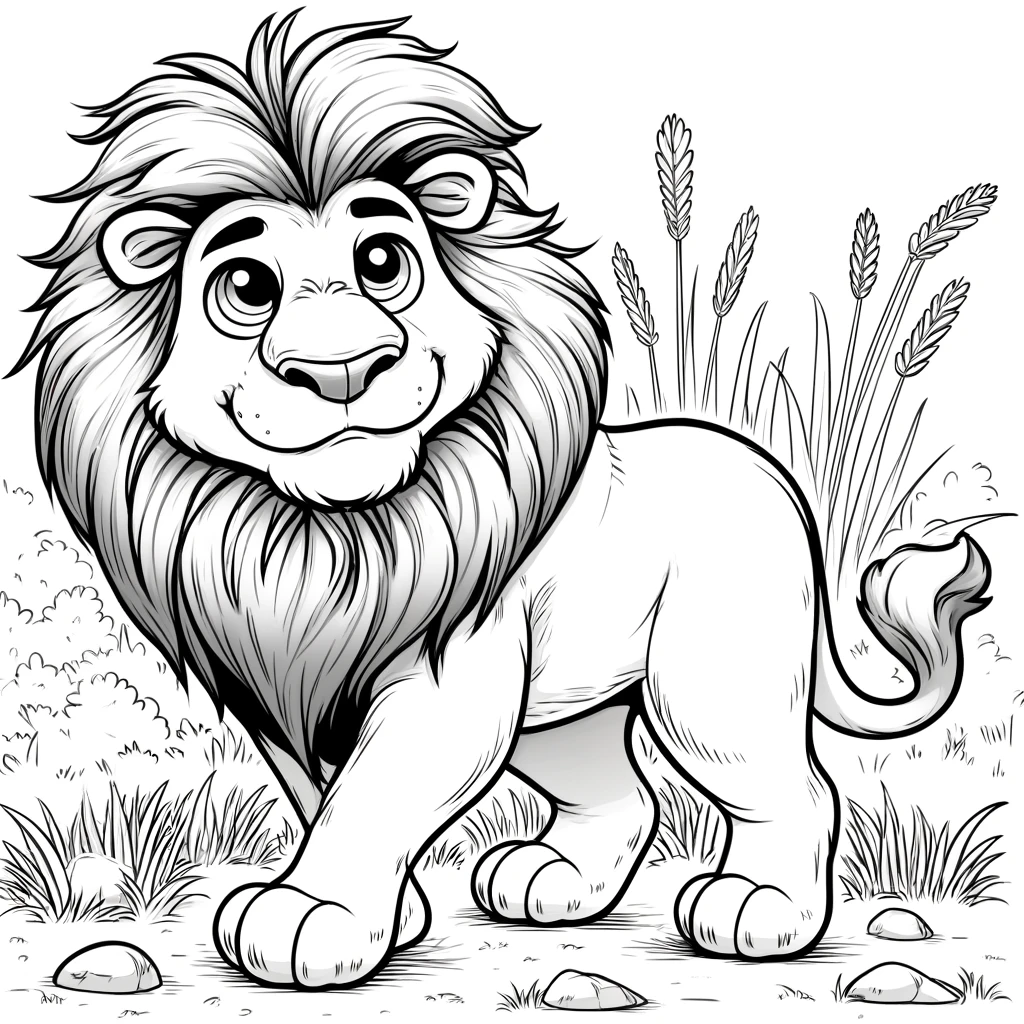 Colorea esta simpática caricatura de un león. Un dibujo fácil y divertido, ideal para estimular la creatividad de los niños.