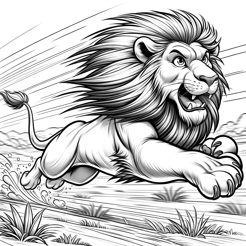 Disfruta coloreando esta imagen de un león corriendo. Una escena llena de energía, ideal para los amantes de los animales salvajes.