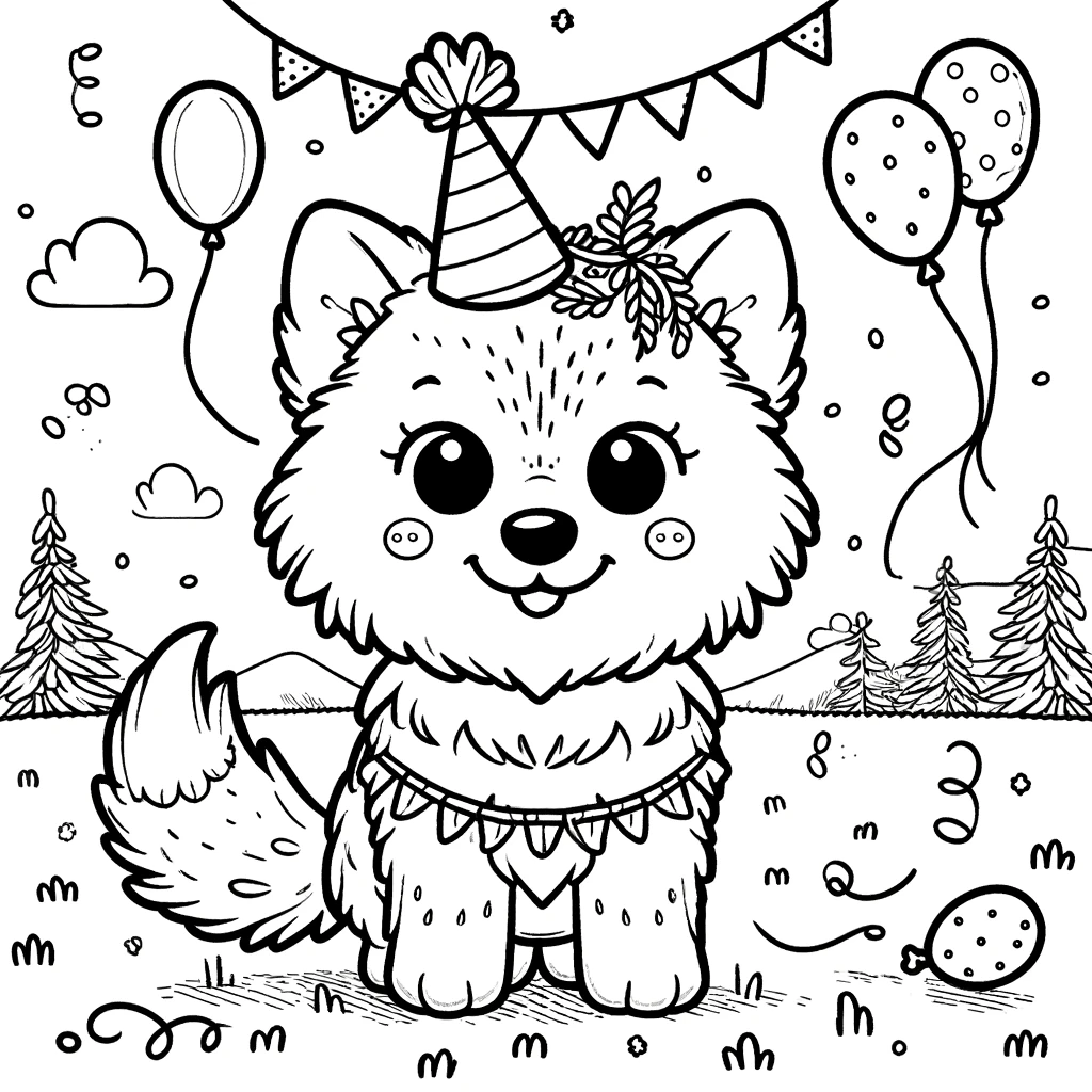 Celebra las festividades con este lobo decorado con adornos. Un dibujo perfecto para niños, fácil de imprimir y colorear.