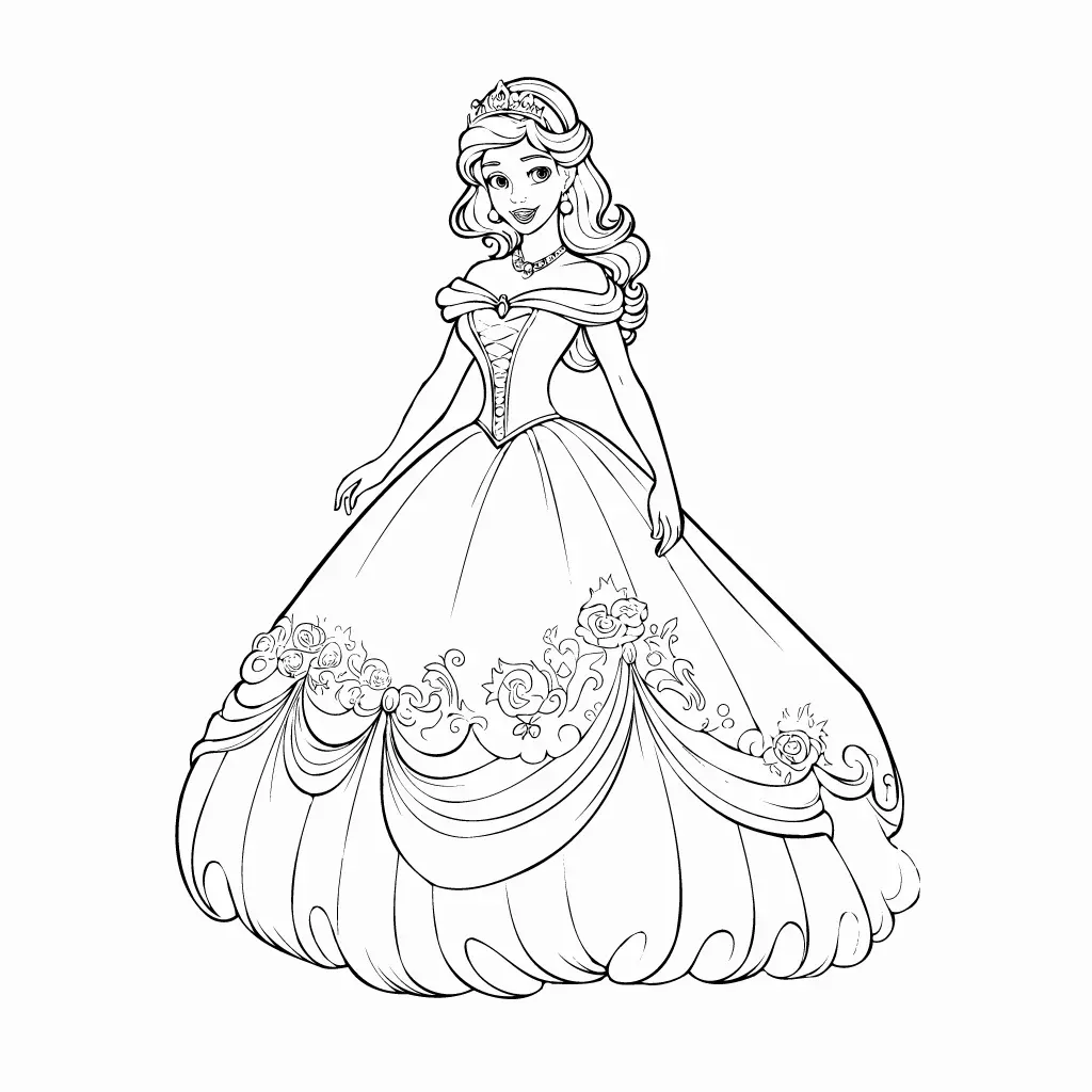 Colorea este hermoso dibujo de una princesa con un vestido de ensueño. Perfecto para los amantes de la elegancia y la magia.