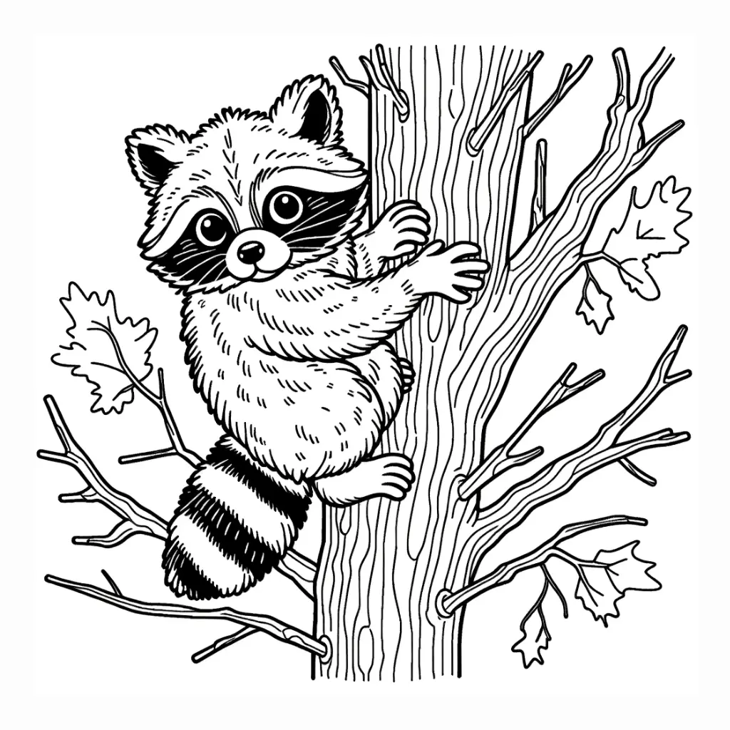 Pinta la tranquilidad de un mapache en una rama con este dibujo. Perfecto para los amantes de los animales y la naturaleza.