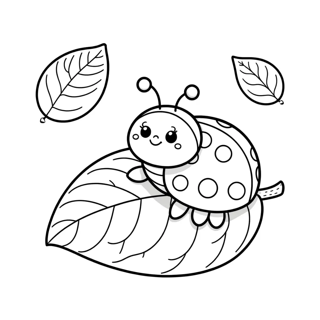 Colorea esta mariquita juguetona sobre una hoja en este dibujo para colorear, perfecto para niños.