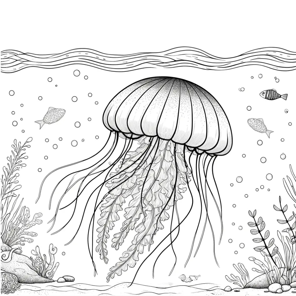 Descarga y colorea esta medusa flotante. Un dibujo sencillo y relajante, ideal para todas las edades.