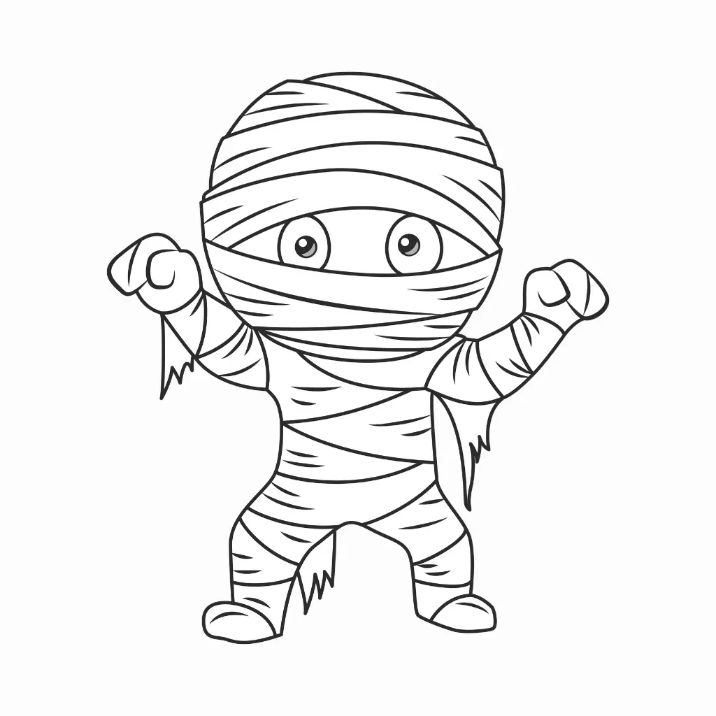 Colorea esta pequeña momia, un dibujo fácil y divertido para los niños en Halloween.