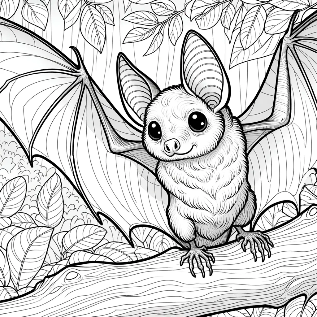 Captura la atención de un murciélago en alerta con este dibujo para colorear. Perfecto para los entusiastas de la vida nocturna.