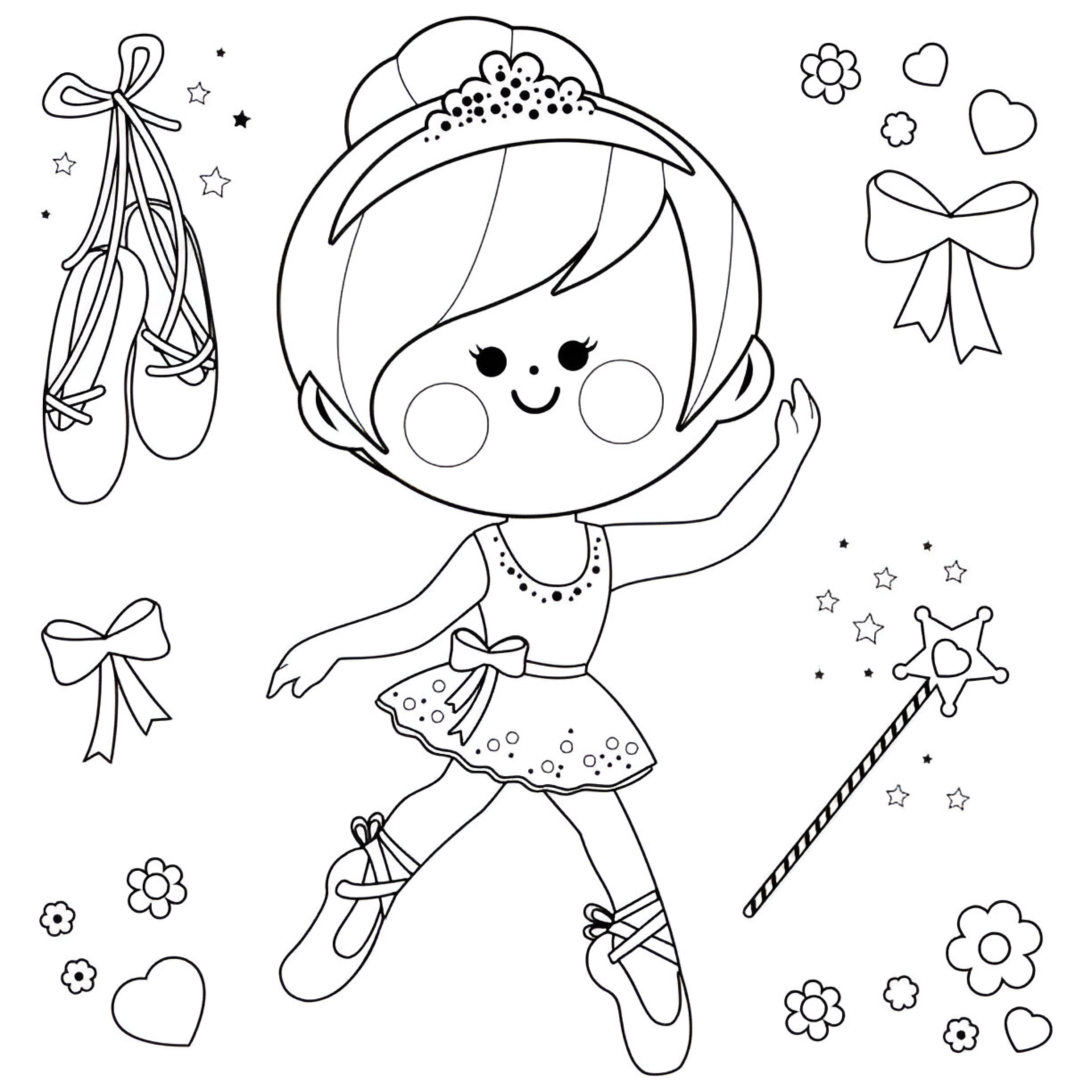 Este lindo dibujo muestra a una niña bailarina estilo kawaii con lazos y una varita mágica. Listo para colorear, es perfecto para los pequeños artistas que adoran el ballet y la magia. Con detalles divertidos y líneas claras, este diseño es perfecto para desarrollar la creatividad.