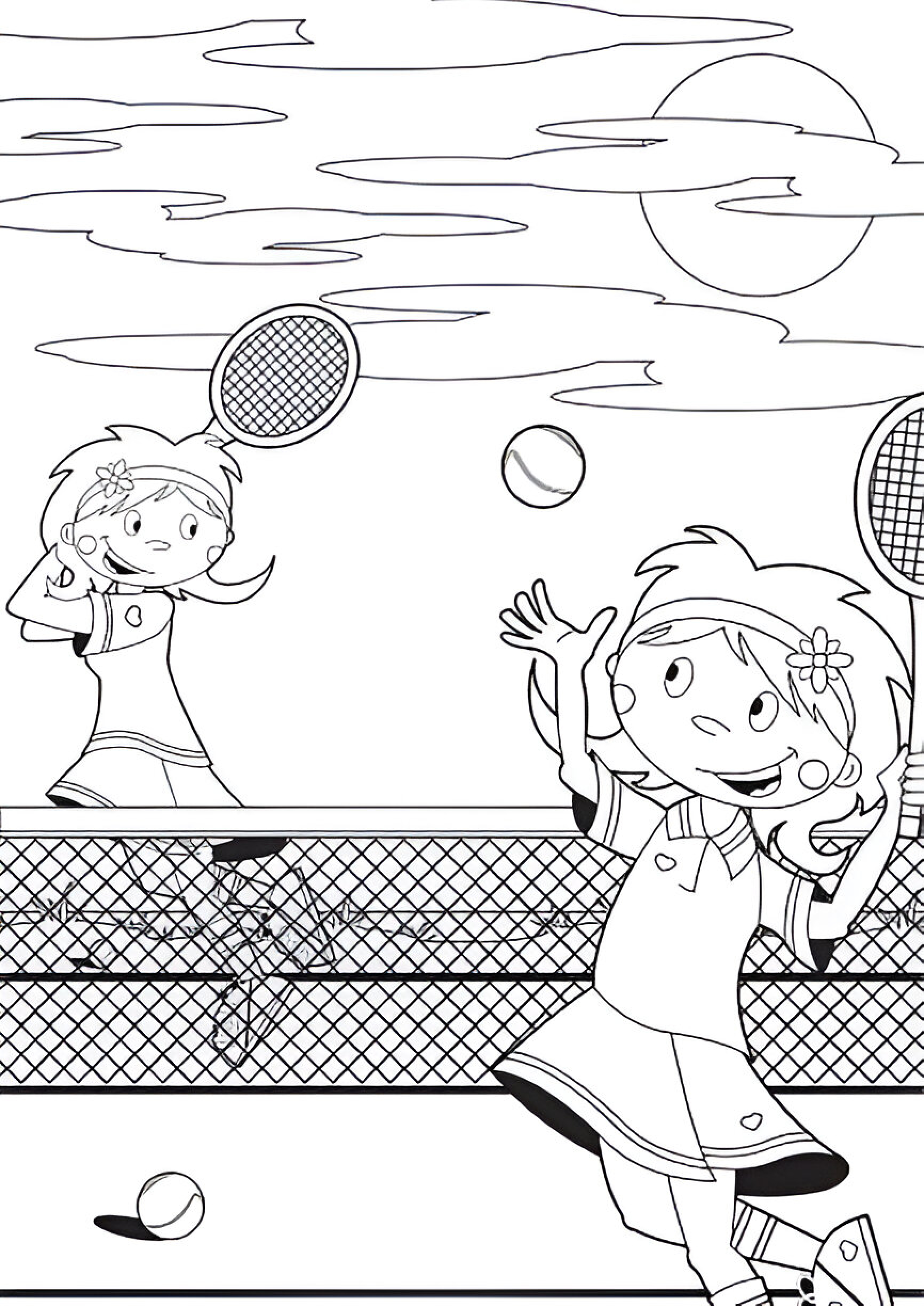 Niñas jugando tenis dibujo para colorear