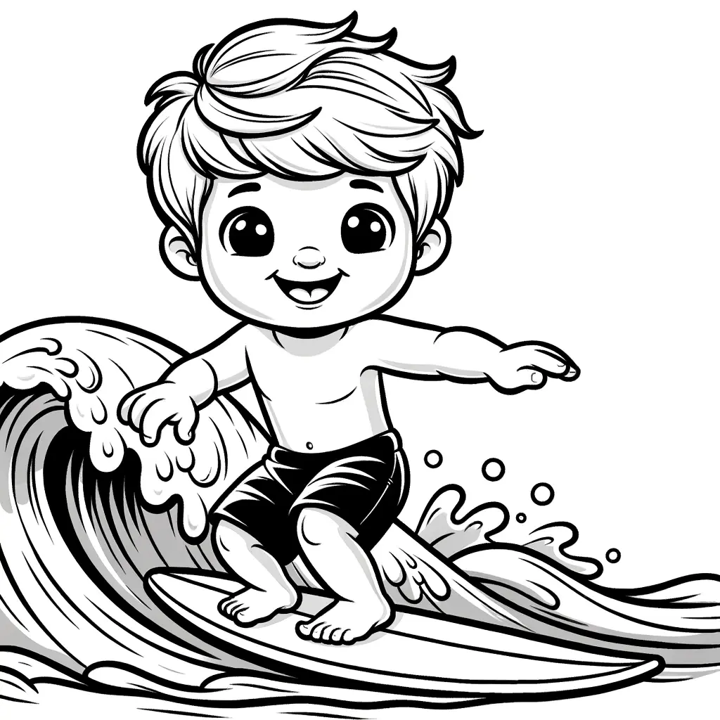 Diviértete coloreando a este niño surfista cabalgando las olas del mar. Un excelente recurso para motivar a los niños a practicar surf.
