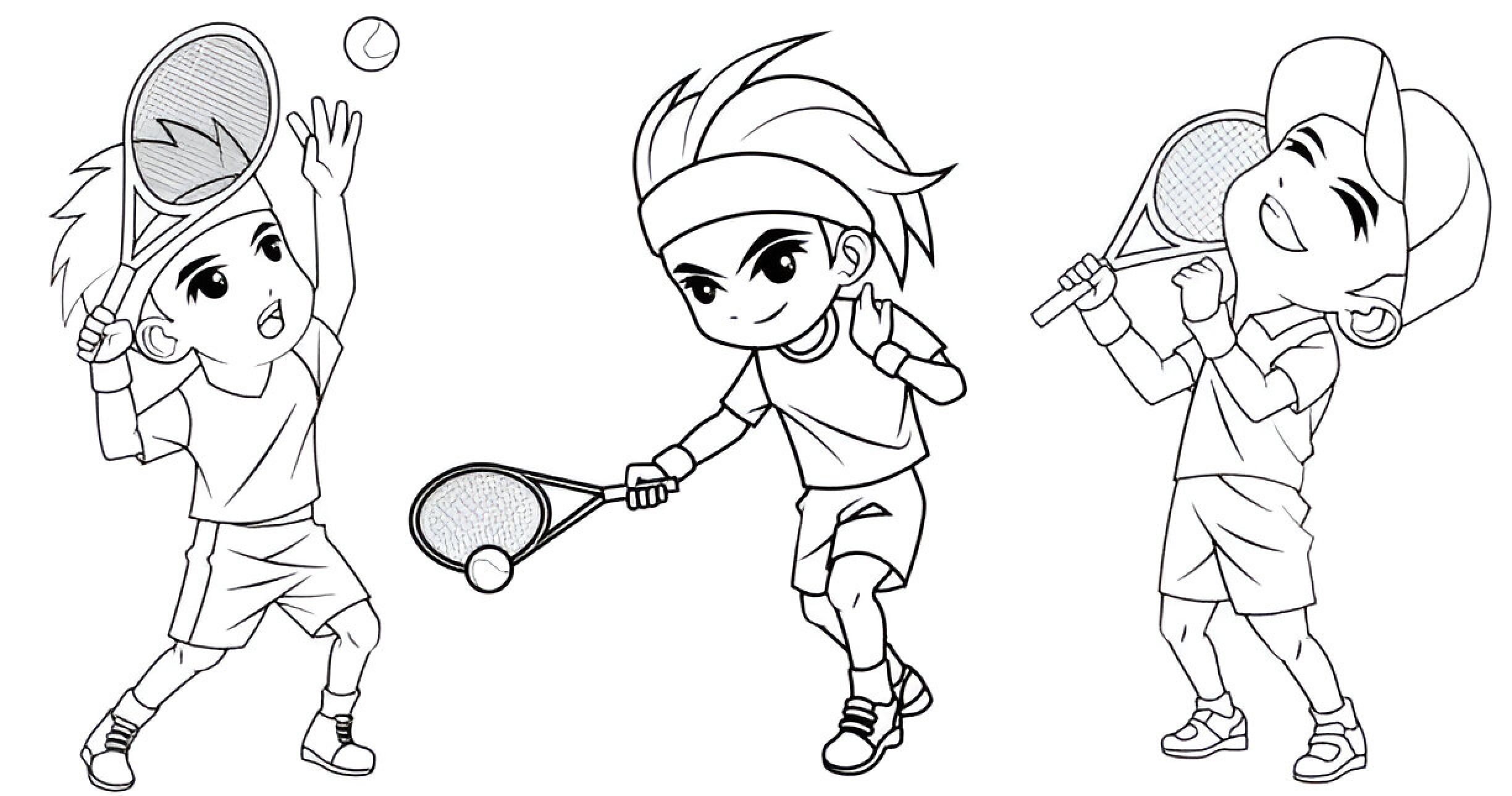 Este dibujo animado muestra a un grupo de niños jugando al tenis en un estilo fácil y divertido de colorear. Es perfecto para los pequeños que disfrutan de los deportes y quieren experimentar con sus habilidades artísticas mientras se divierten coloreando personajes animados.