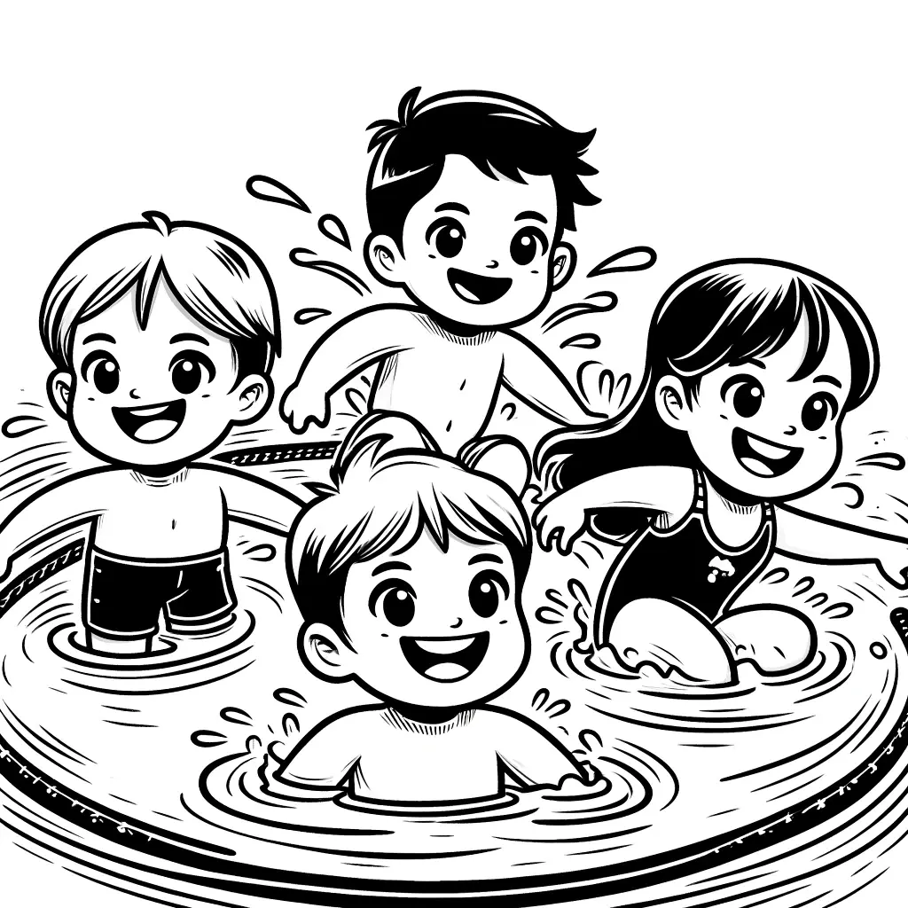 Colorea a estos niños disfrutando de un divertido día en la piscina. Perfecto para actividades recreativas y educativas para niños.