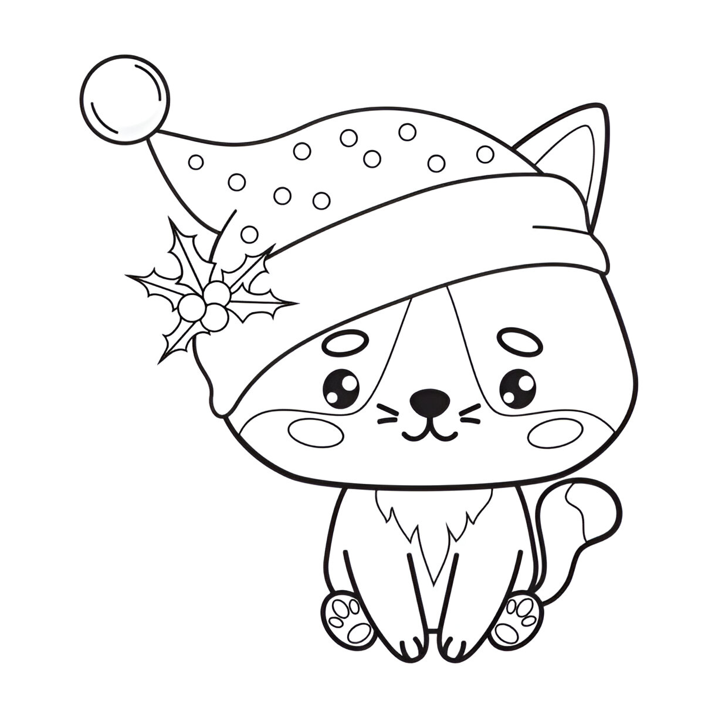 Disfruta coloreando este adorable gato navideño kawaii con un gorro festivo. Ideal para los amantes de los gatos y las festividades. Añade tu propio toque de color y personaliza esta linda página para colorear. ¡Perfecto para disfrutar en la temporada navideña!