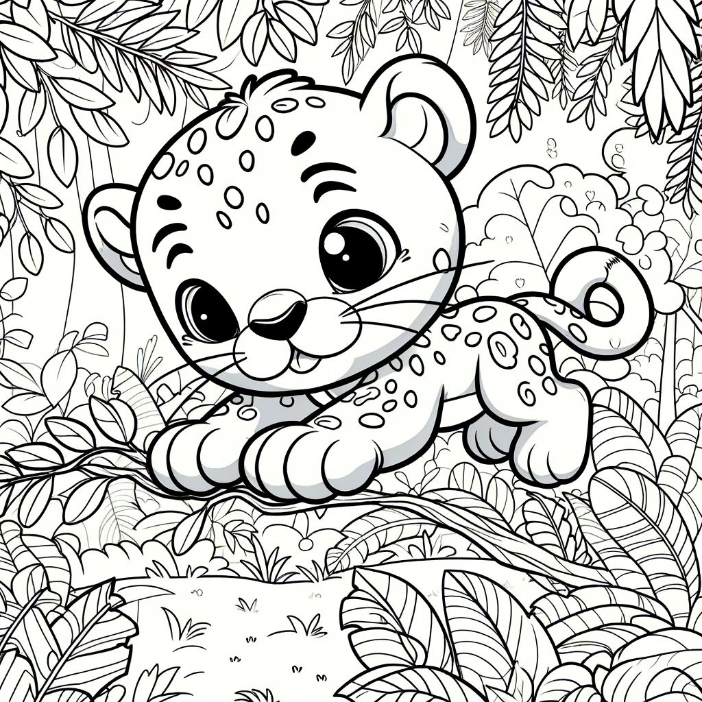 Explora la acción con esta pantera saltando en la jungla. Un dibujo emocionante y perfecto para que los niños lo coloreen.