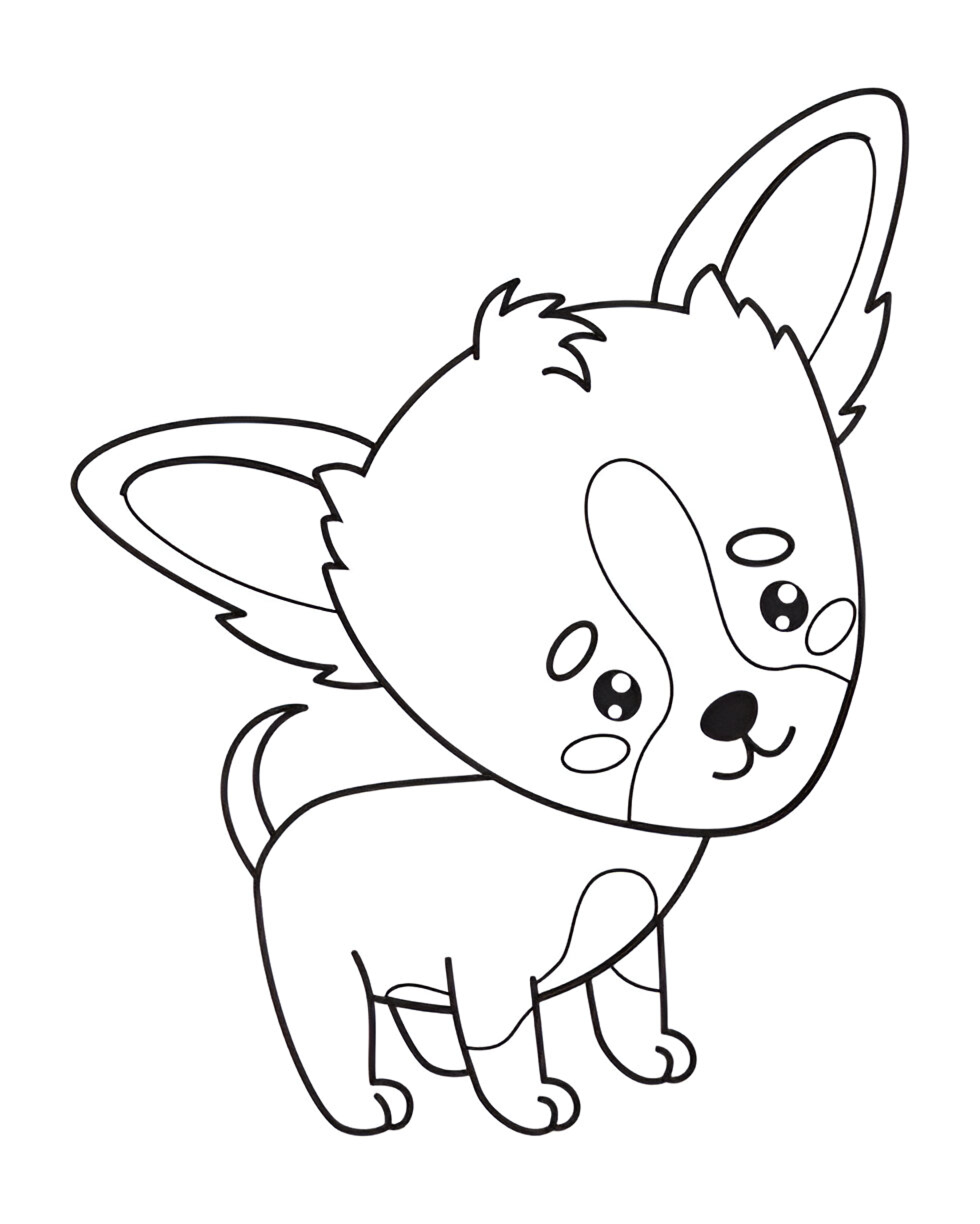 Este tierno perrito chihuahua kawaii está listo para ser coloreado. Dale vida a este adorable cachorro con tus colores favoritos y conviértelo en el protagonista de tu página de arte. Ideal para los amantes de los perros y las ilustraciones tiernas.