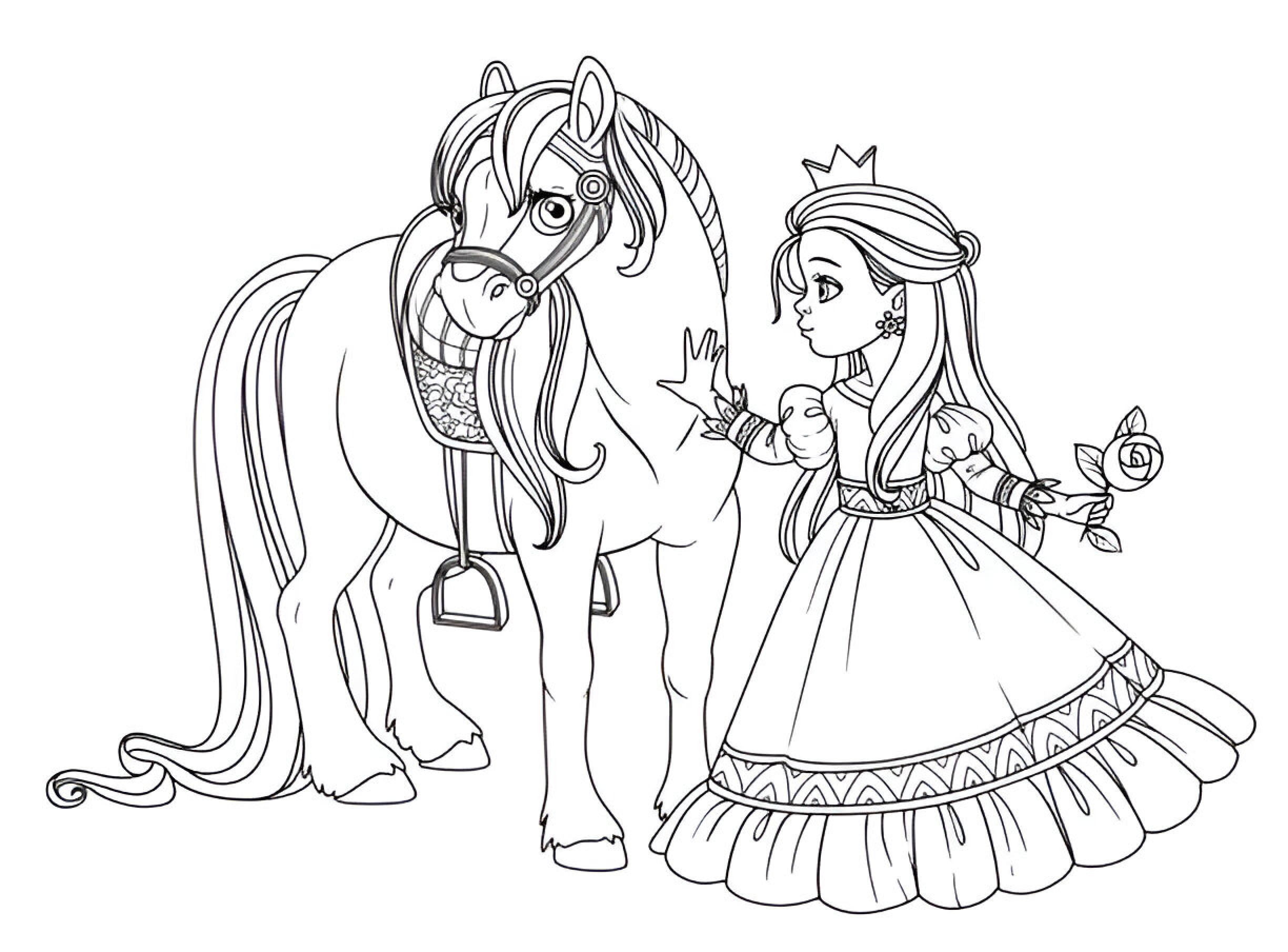 Este encantador dibujo para pintar muestra a una adorable princesa junto a su caballo y una hermosa flor. Perfecto para que los niños desarrollen su destreza artística mientras crean un mundo lleno de fantasía y ternura.
