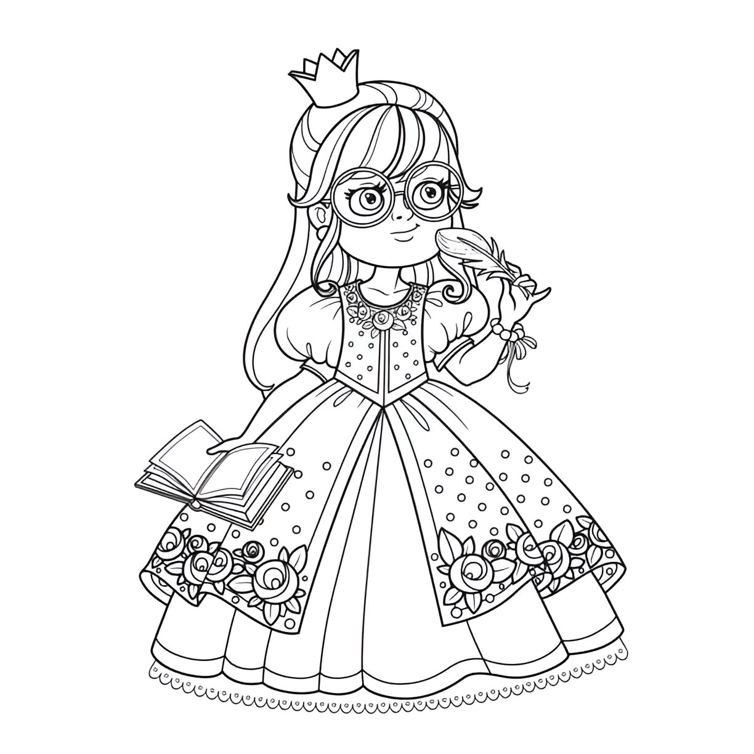 Este dibujo para colorear de una princesa lectora rodeada de flores es ideal para niños mayores que disfrutan de los detalles. Con cada página coloreada, podrán imaginar un mundo lleno de conocimiento y belleza natural.