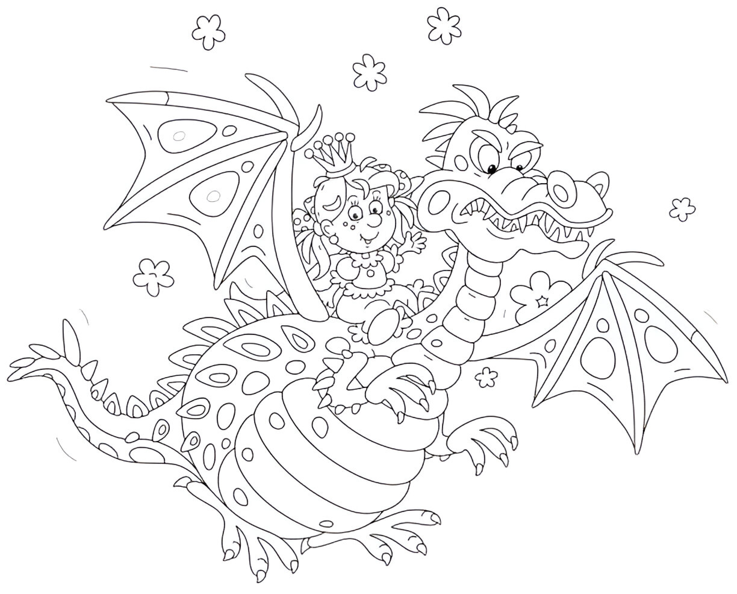 Esta mágica escena muestra a una princesa volando con un dragón amigable, perfecta para colorear. Un diseño que combina la magia y la aventura, ideal para niños que sueñan con un mundo lleno de dragones y criaturas fantásticas. Una experiencia creativa que despertará la imaginación de los pequeños.