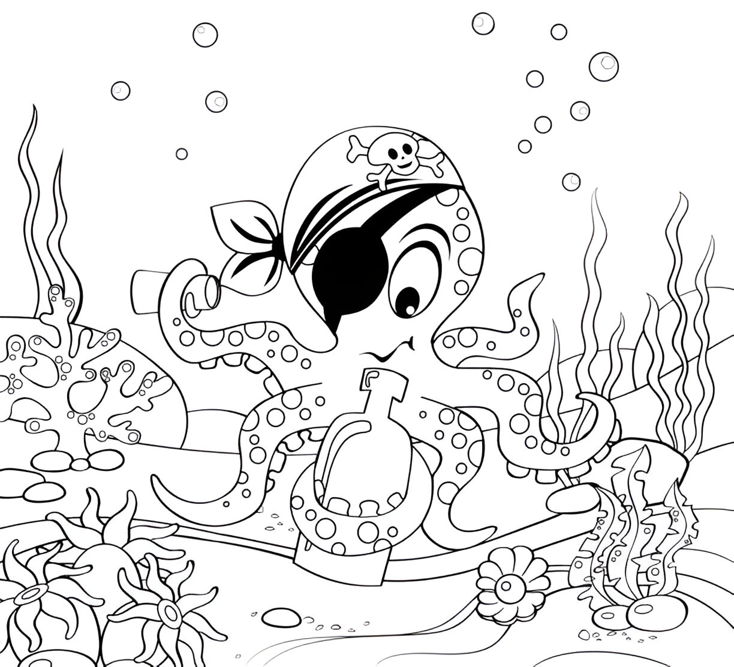 Aventúrate en alta mar con este pulpo pirata listo para surcar los océanos. Este dibujo para colorear combina la emoción de la vida pirata con la ternura de un simpático pulpo, lo que lo convierte en una opción ideal para niños y niñas que adoran las historias de piratas y criaturas marinas.
