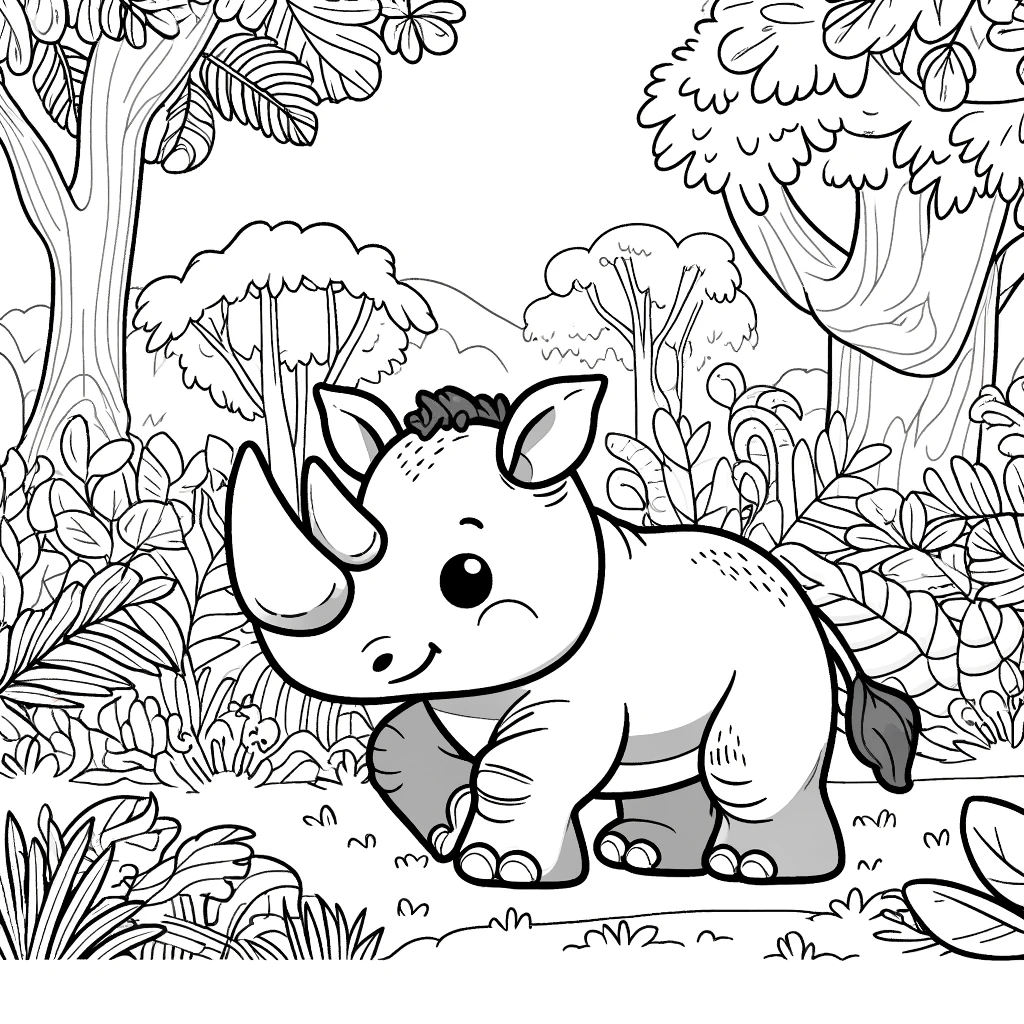 Disfruta coloreando este rinoceronte en su hábitat natural. Un dibujo impresionante y perfecto para imprimir y disfrutar.