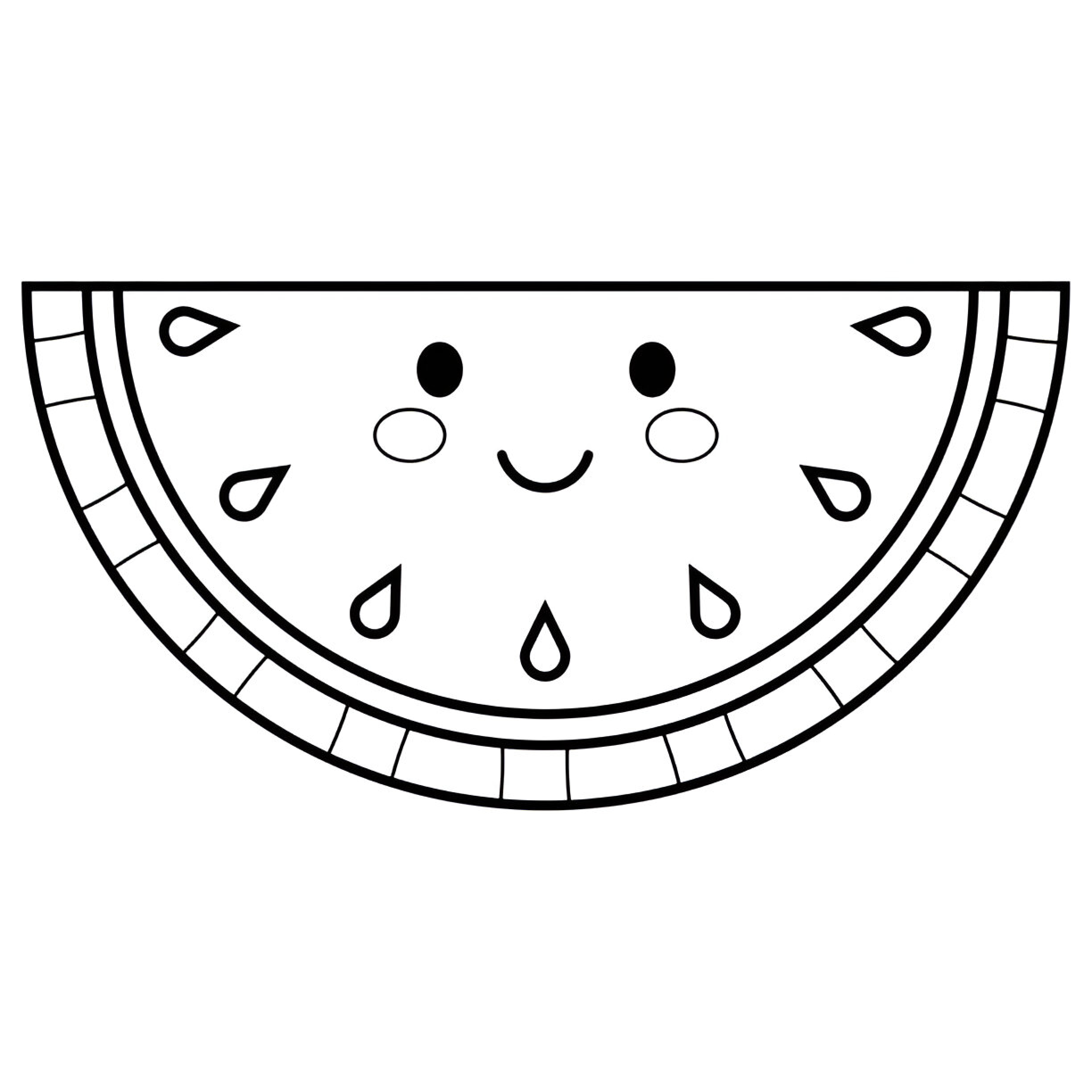 Esta simpática rebanada de sandía kawaii está llena de felicidad y lista para ser coloreada. Añade tonos vibrantes a esta jugosa ilustración y disfruta del arte mientras creas algo único. ¡Perfecto para amantes de las frutas y el estilo kawaii!