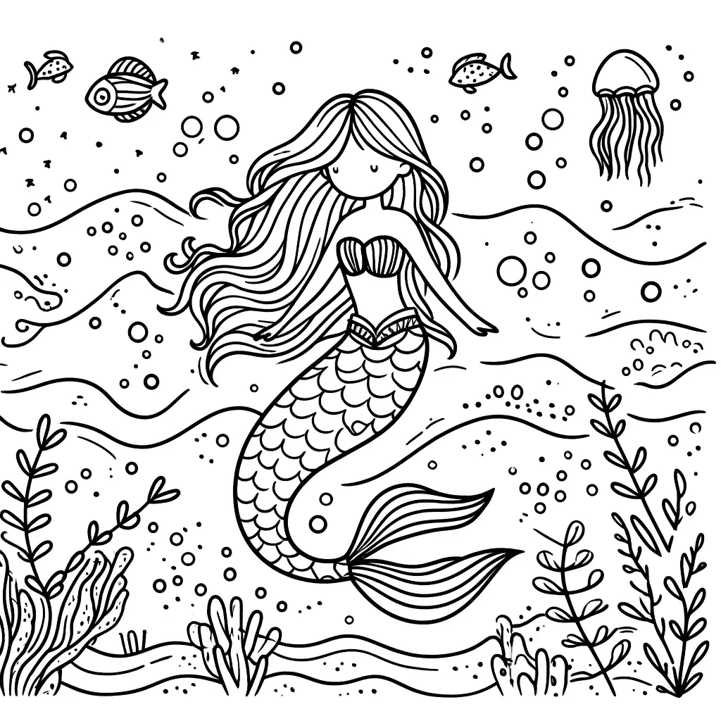 Un dibujo encantador de sirenas nadando en el océano, diseñado especialmente para los niños. Fácil y divertido de colorear.