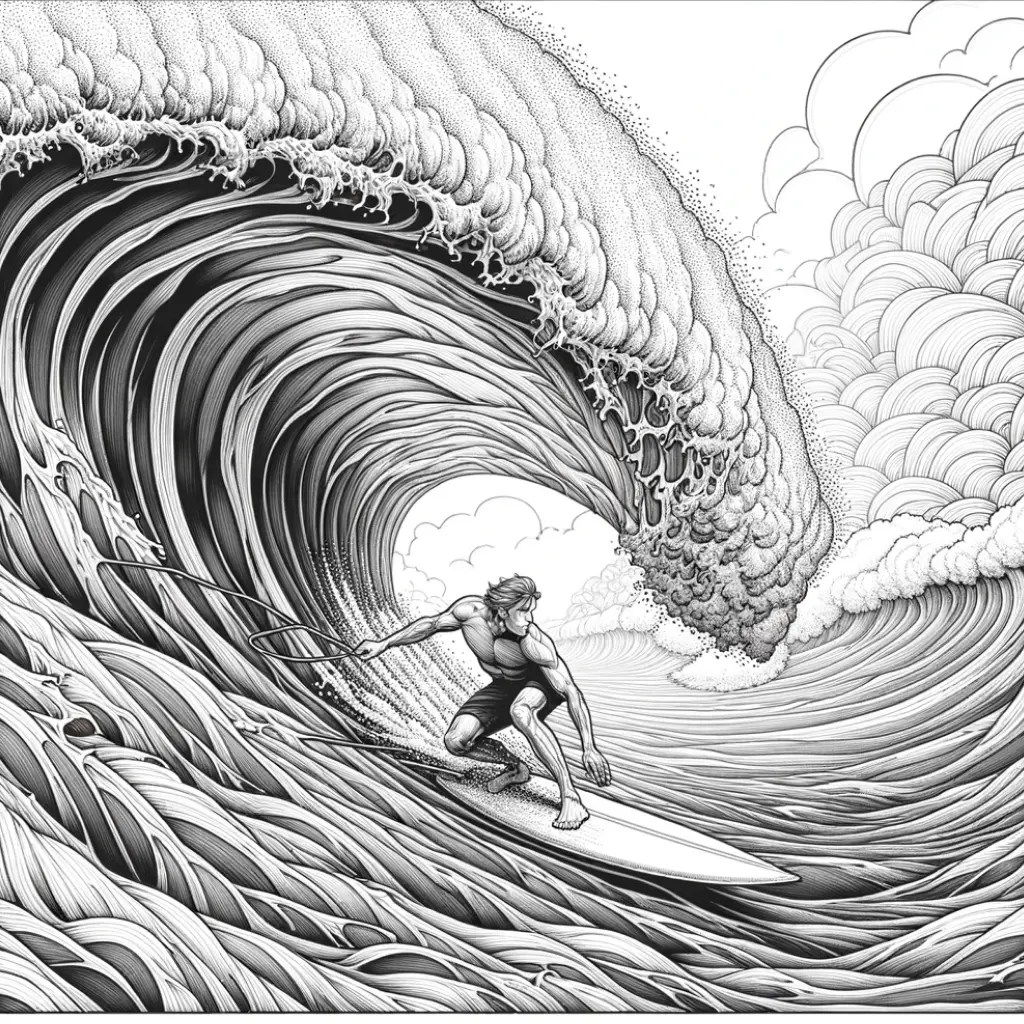 Colorea este emocionante dibujo de surf extremo. Perfecto para inspirar a los niños amantes de la adrenalina y los deportes acuáticos.