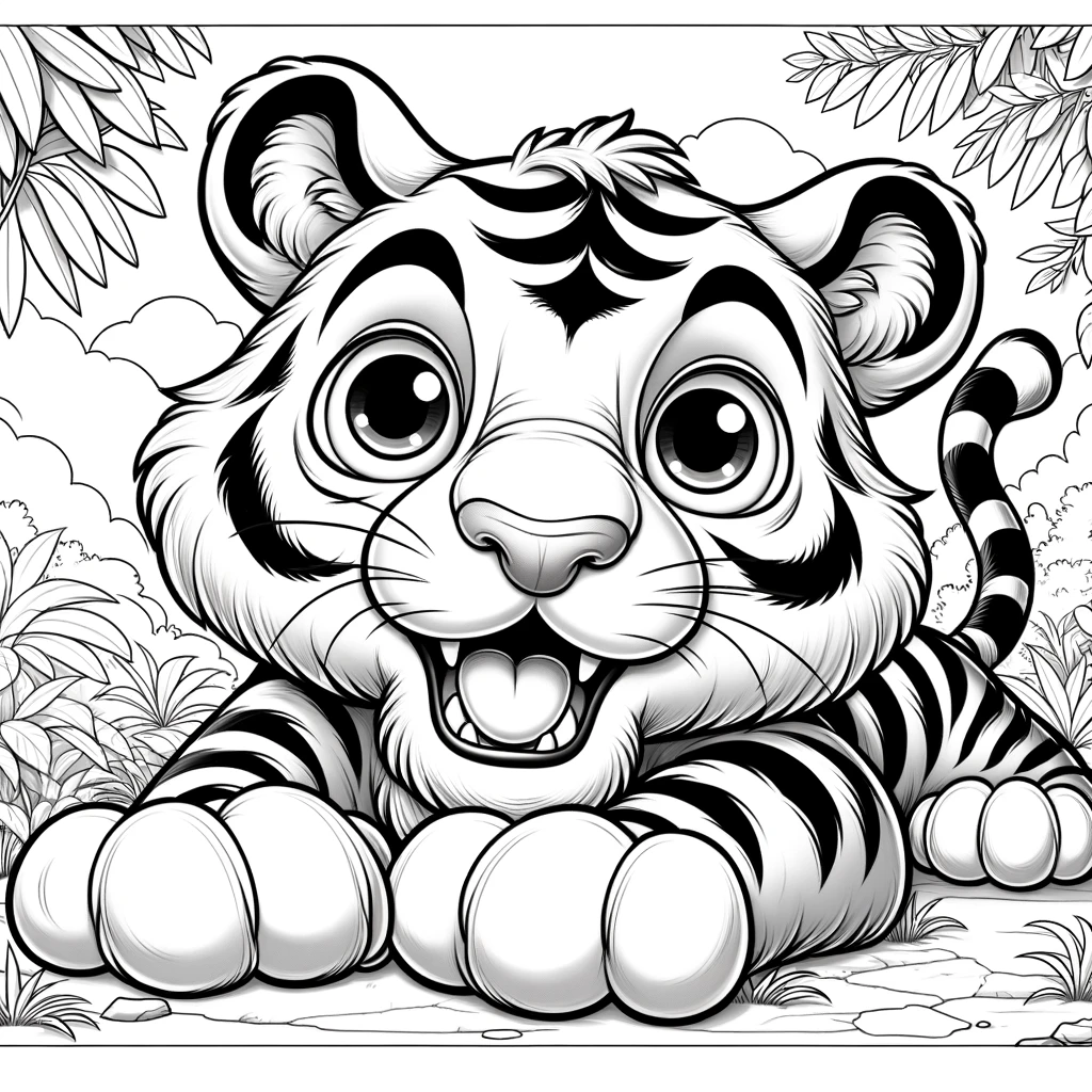Colorea este adorable tigre cachorro. Un dibujo tierno y perfecto para los niños que aman los animales jóvenes.