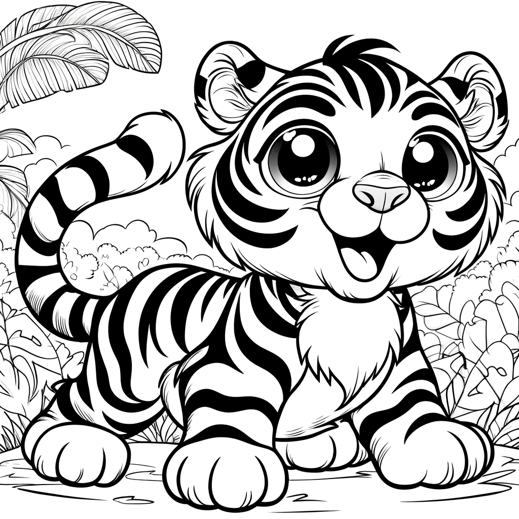 Diviértete coloreando este tigre en versión caricatura. Un dibujo divertido y perfecto para estimular la creatividad de los niños.