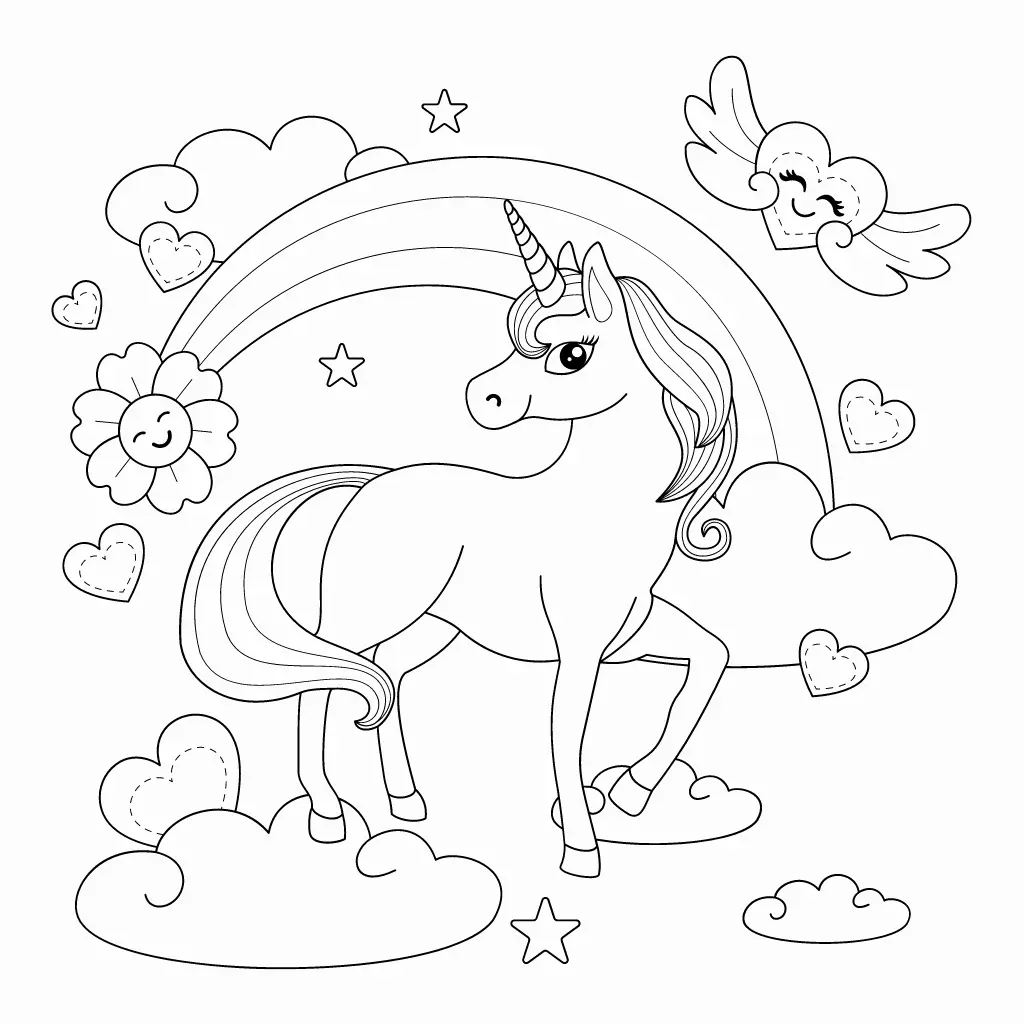 Este dibujo fácil de un unicornio con un arco iris es perfecto para los más pequeños. Llénalo de colores y alegría.